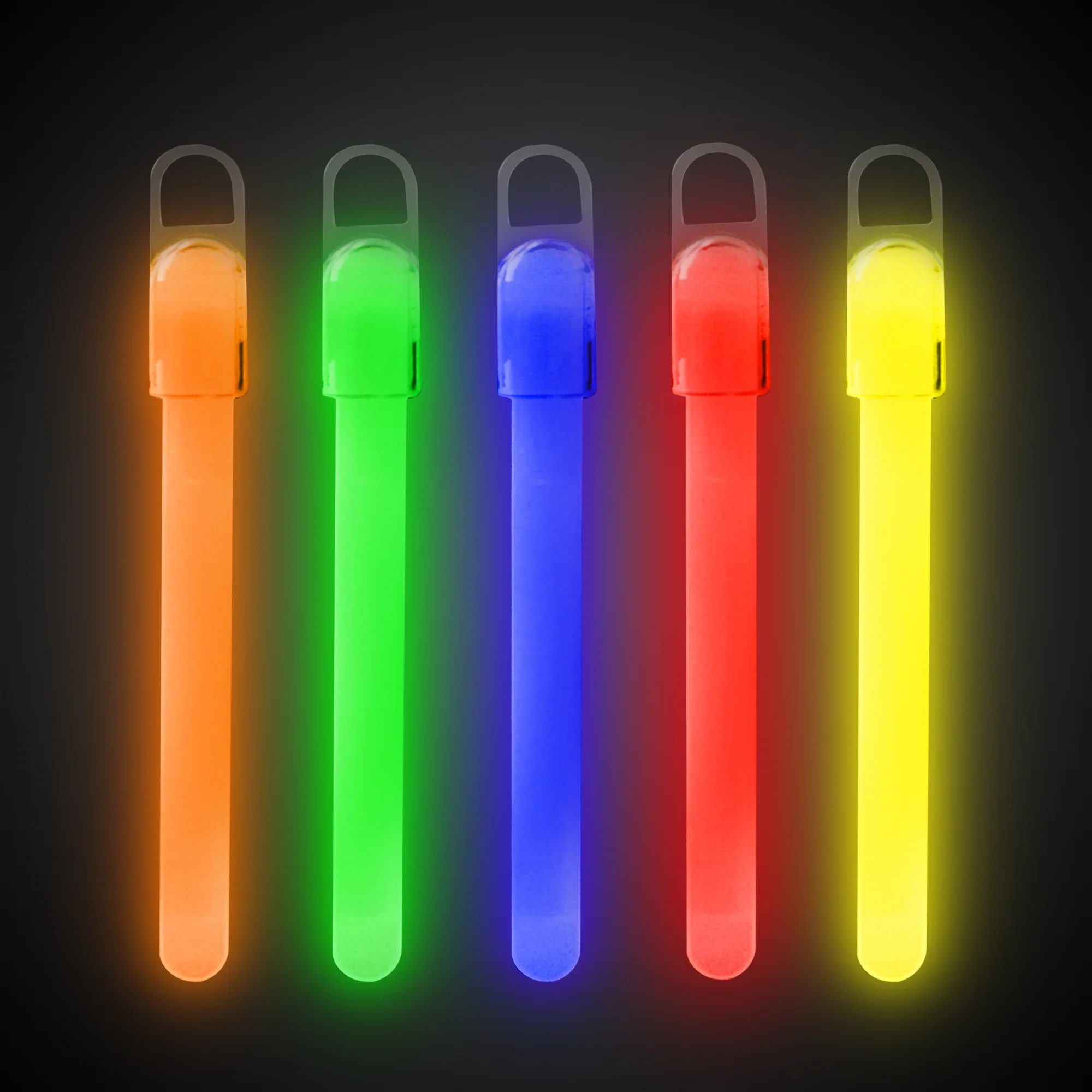 Color your night! Dazzle the night away with our 6" Standard Assorted Glow Sticks. Bend and Shake to experience the mesmerizing soft glow lights one time for 6-8 hours. Perfect for fishing floats, camping, indoor and outdoor decoration for night parties, concerts, or events. Made with safe and non-toxic materials. Sold 25 pieces of assorted color glow sticks in a box. A cap (packed separately) is included with each stick making it easy to hang. Sold in a pack of 25 glow sticks. Please order in increments of 1 pack.