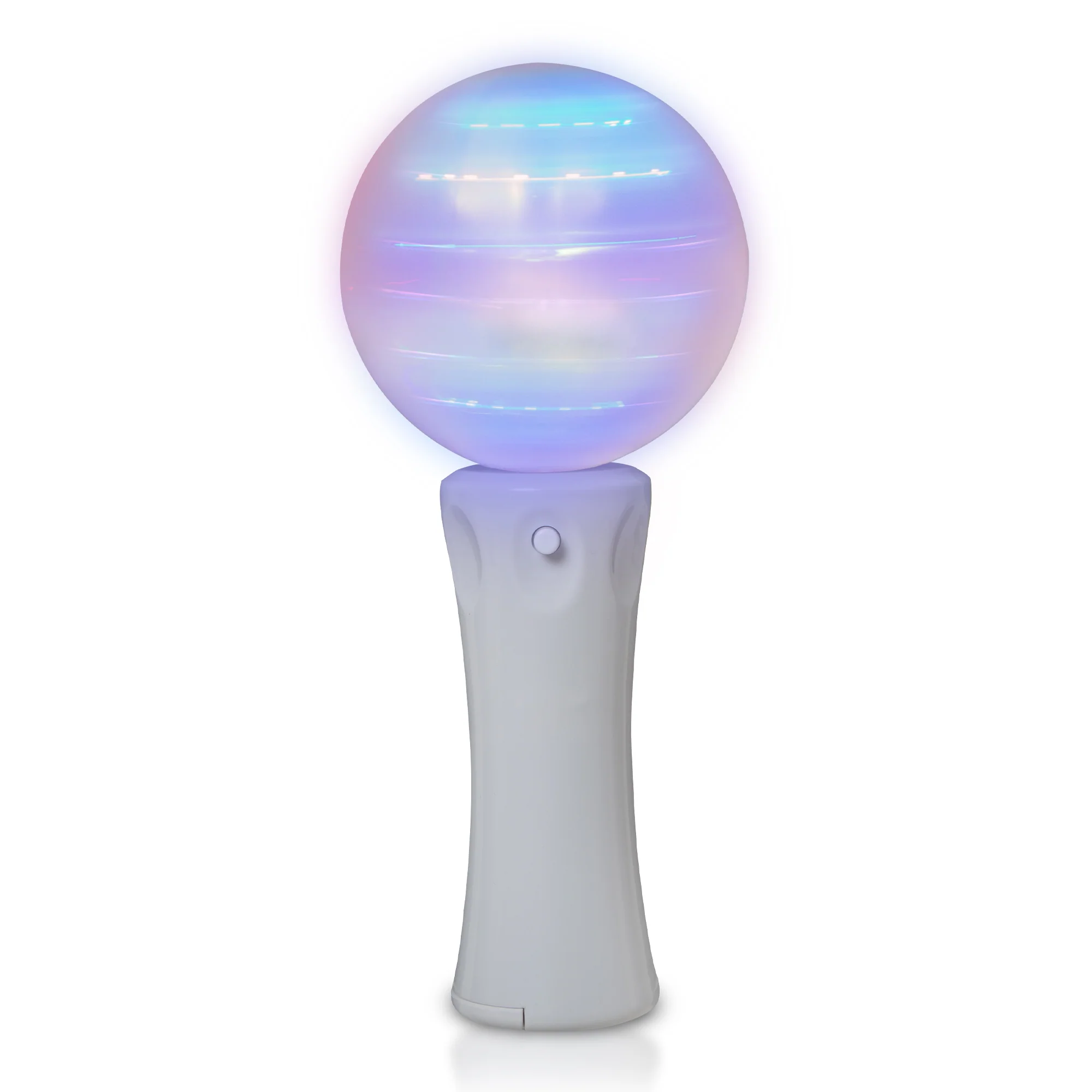 Illuminate any event with our LED Spinner Orb Wand. This mesmerizing 7 1/2" wand features a sleek 4 1/2" long white handle and a dazzling milky white orb at the top and creates an enchanting display of colors with a simple press of the on/off switch. Powered by (3) included & replaceable AA batteries, the globe lights up with 10 bright multi-color LEDs that create a hypnotic spinning effect around the inside. Perfect for favors, vending & redemption at parties, concerts, or as a captivating toy for children. Please order in increments of 1 spinner wand.