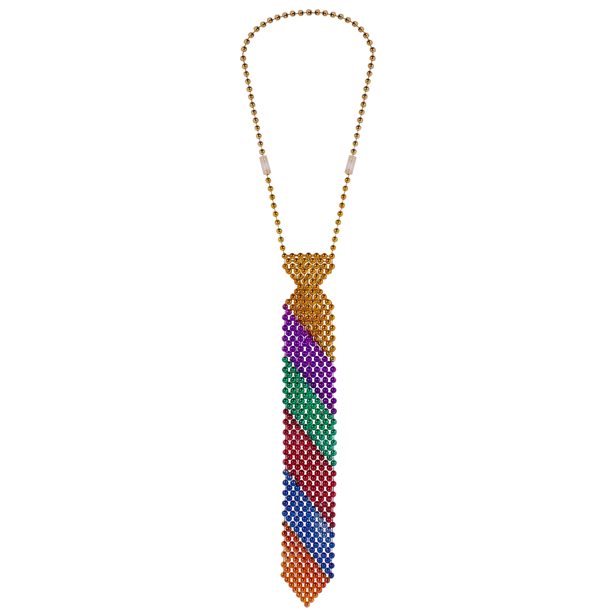 Show your pride with our rainbow beaded tie. Our 13" colorful rainbow beaded tie slips over the easily and looks great at parades, festivals and more! One size fits most.