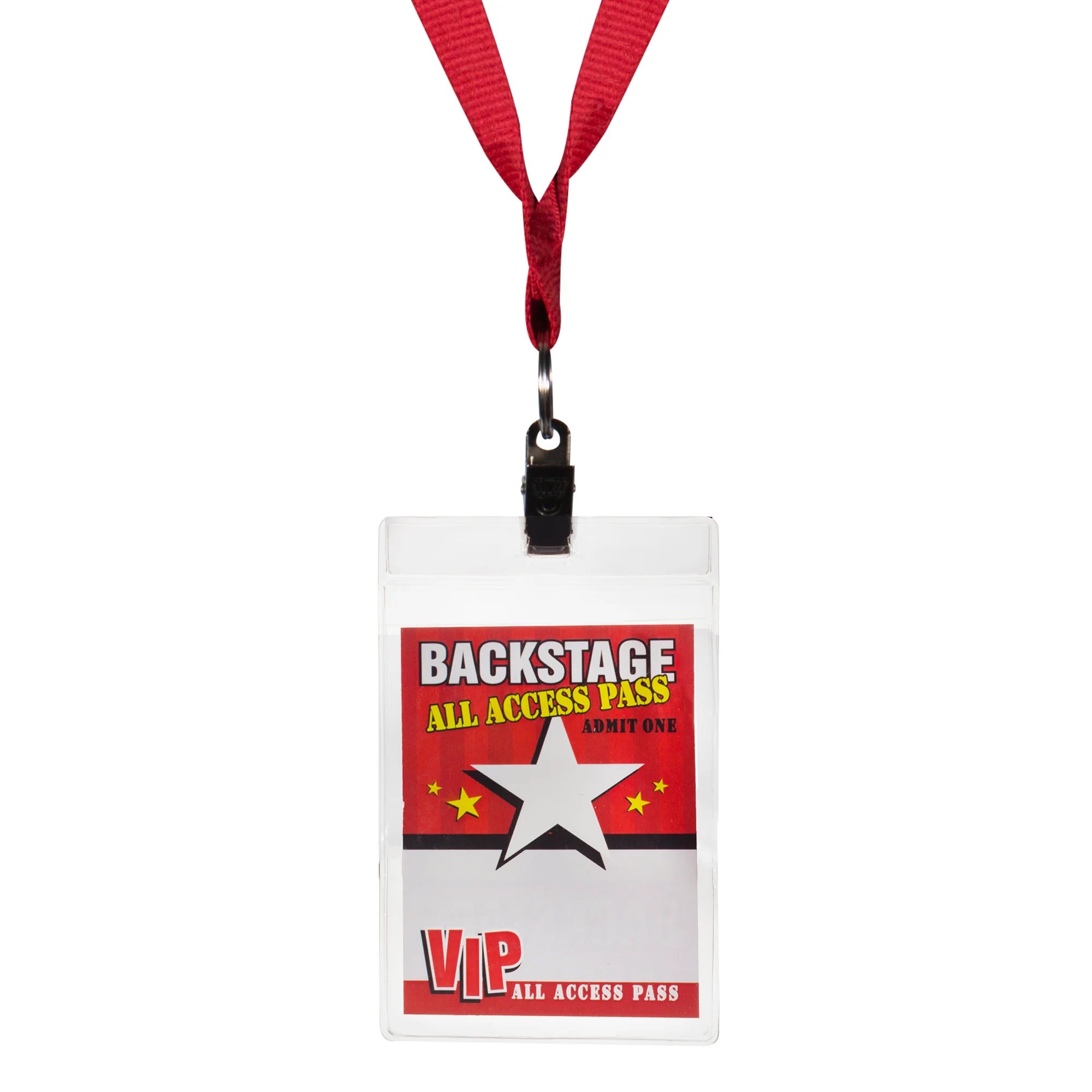 Let your very important guests feel like VIPs at your next party. Perfect for all kinds of events and parties like disco parties, awards night parties, sporting events, or nightclub events. Use our clear plastic laminate VIP party pass lanyard as an invitation, place card, or as a party favor for your guests to have a great time. Our All Access club pass comes on a 36" VIP lanyard. The size of the clear plastic holder measures 5" in length and 2 7/8" in width. You can customize each VIP party pass lanyard with a Sharpie or paint with your own copy, or have Back Stage on one side and All Access on the other. SKU: APR174EA